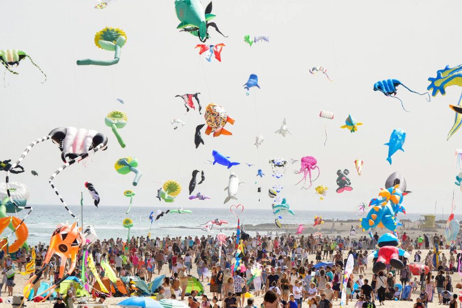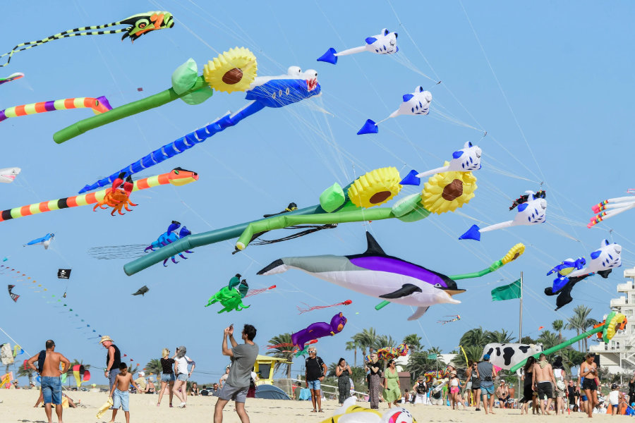 Hunderte dieser leichten Flugkörper schweben in allen erdenklichen Farben und Formen, in der die Kreativität der Teilnehmer keine Grenzen zu kennen scheint. Ob Biene, Krake, Haifisch oder Bär, ob Sonnenblume, Fluguntertasse, Comic-Figur oder überdimensional fliegende Buntstifte - die Motive sind mannigfaltig und nur das Zusehen ist ein amüsanter Zeitvertreib. Die Optimisten messen sich darum, welcher Drache länger und höher am Himmel schwebt. Im Vorjahr lockte es über 40.000 Besucher an, die den 200 Hobby- und Profi-Kitern aus 15 Ländern, wie die „cometistas“ heute auf Deutsch bezeichnet werden, zusahen. Erlaubt ist, was Spaß macht!